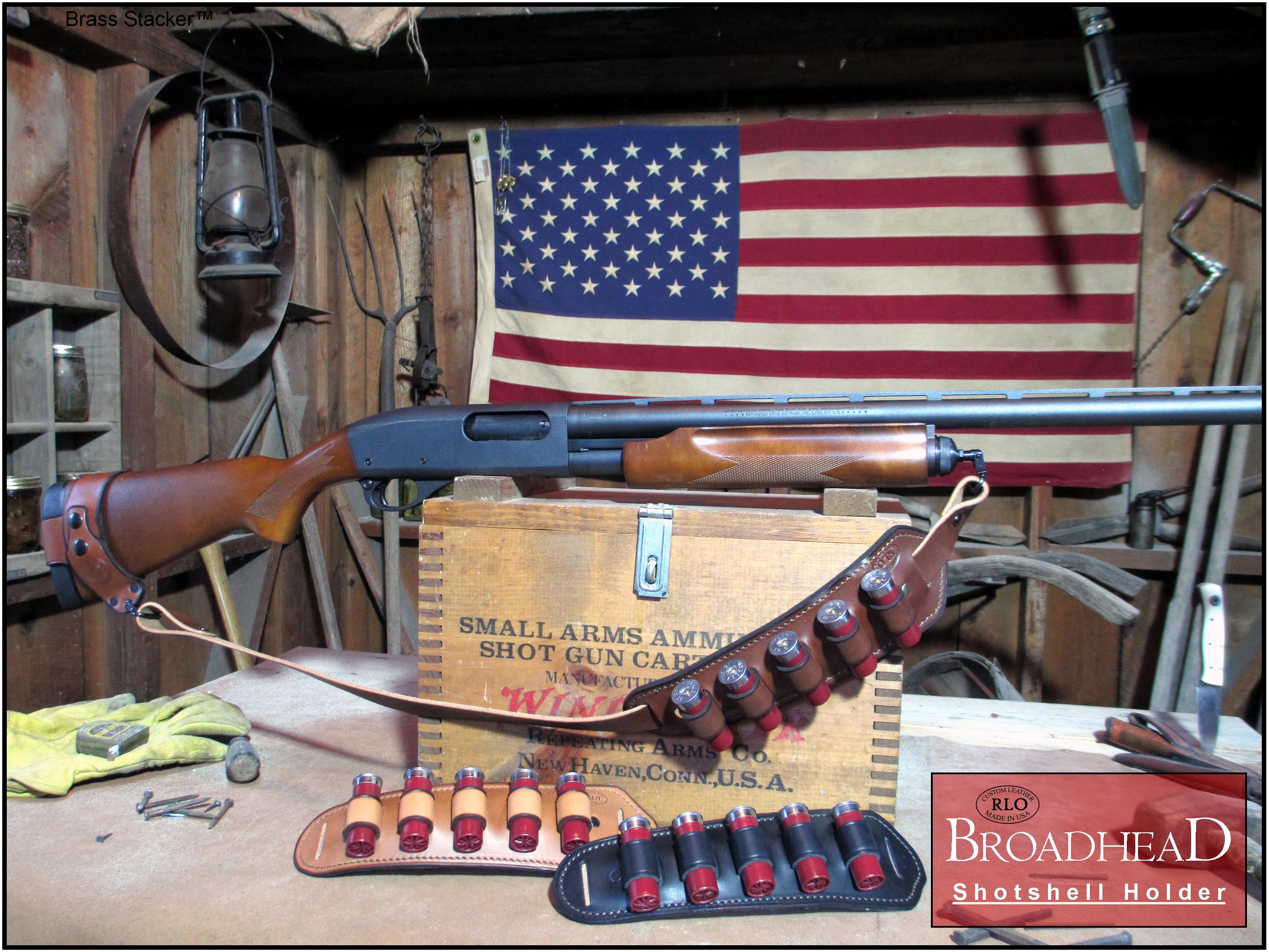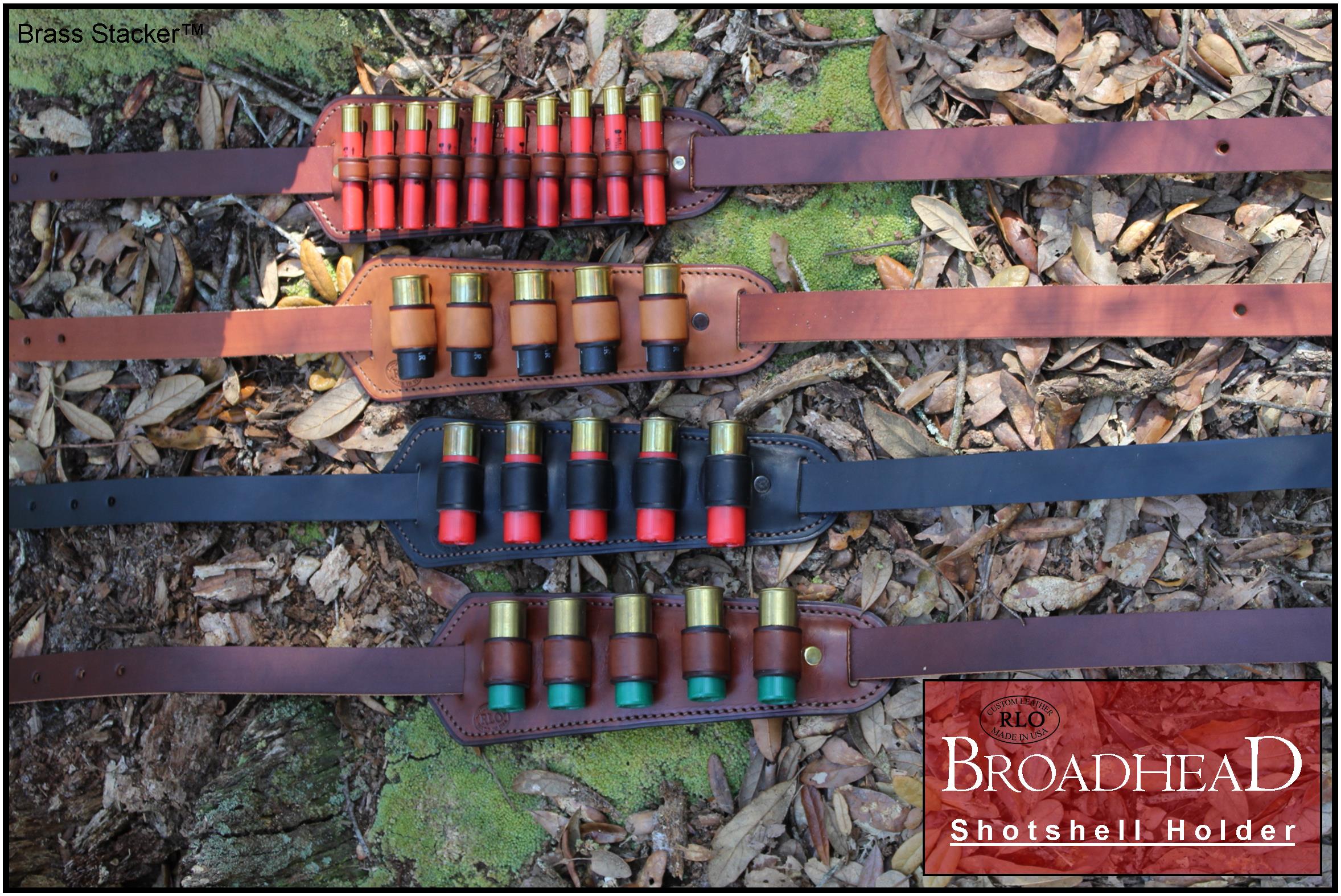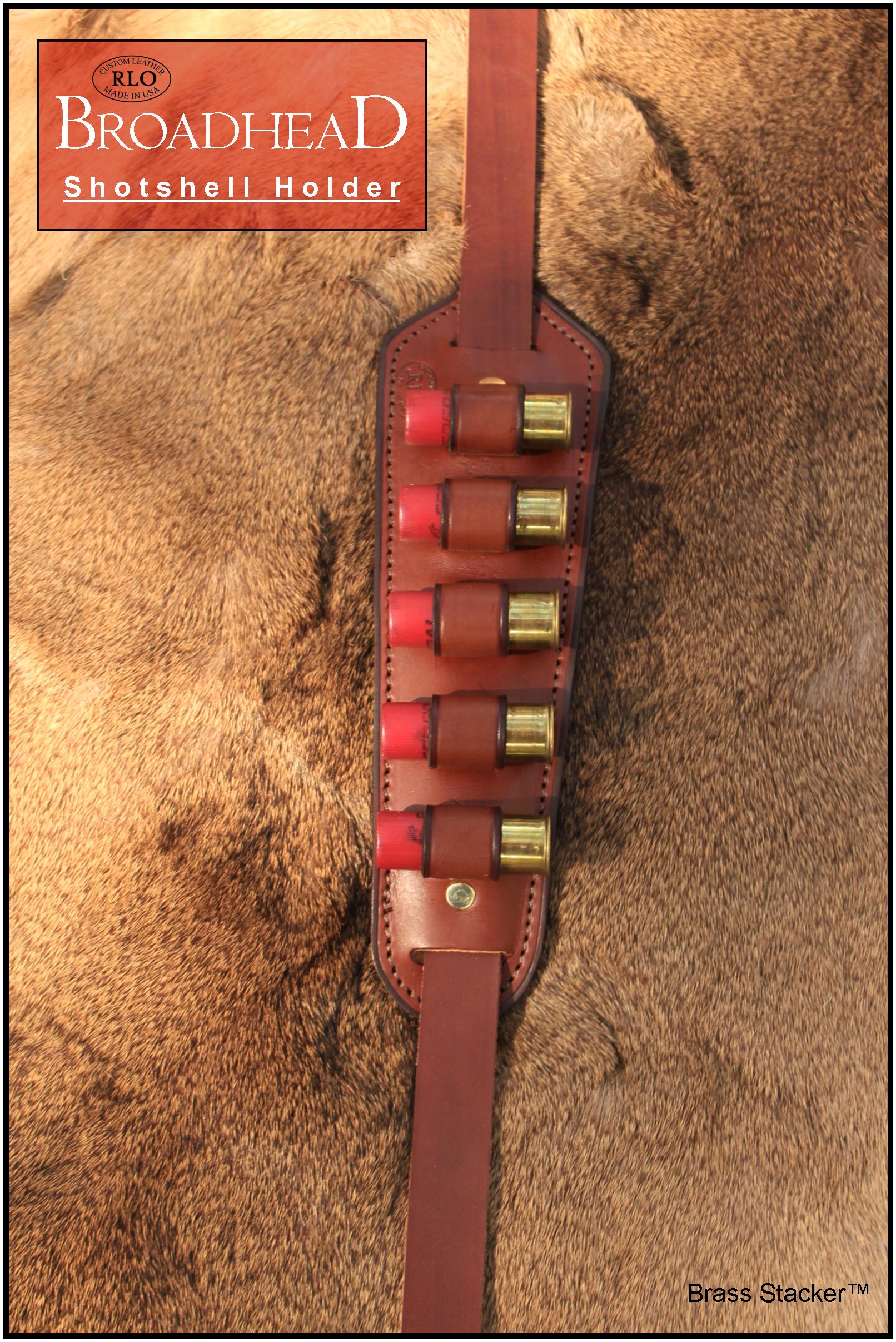 Renowned leather craftsman Rick Lowe has created these beautifully handcrafted Broadhead Shot Shell Holders for shotguns. Our large gauge (12, 16, 20 & 28) holders hold 5 shells while the small gauge (410) holder holds 10 shells. These padded holders are adjustable along the length of the 1″ wide sling strap.